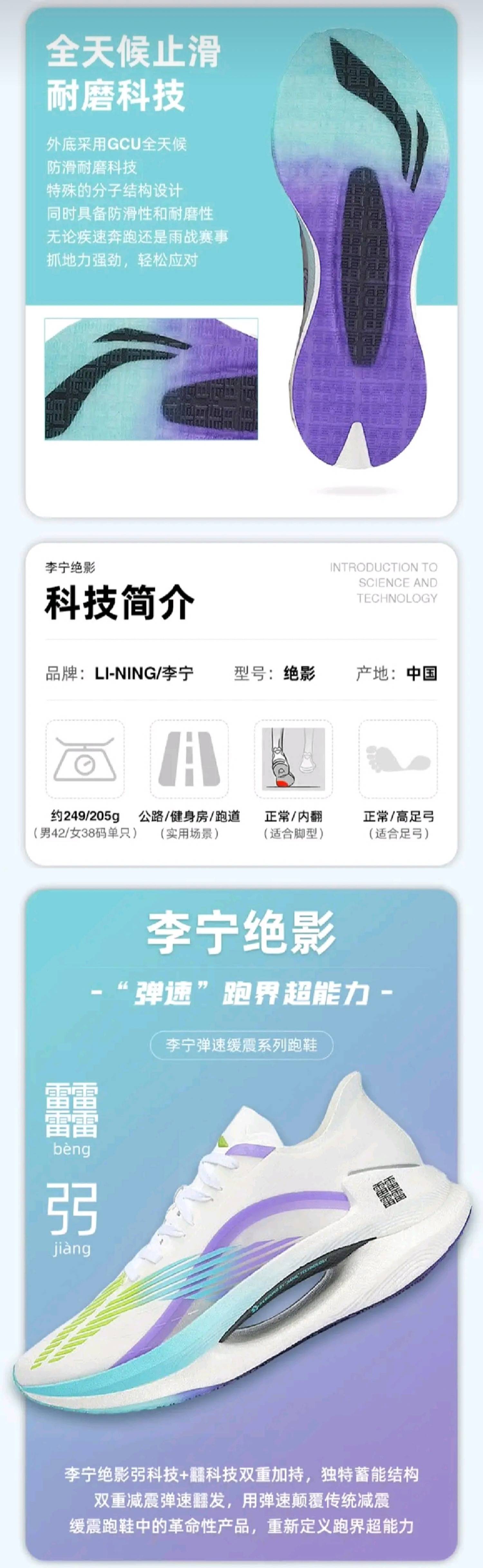 李宁 绝影1 䨻科技 弜科技 䨻丝 回弹支撑 防滑耐磨 减震透气 跑鞋 标准白/柔水蓝 42