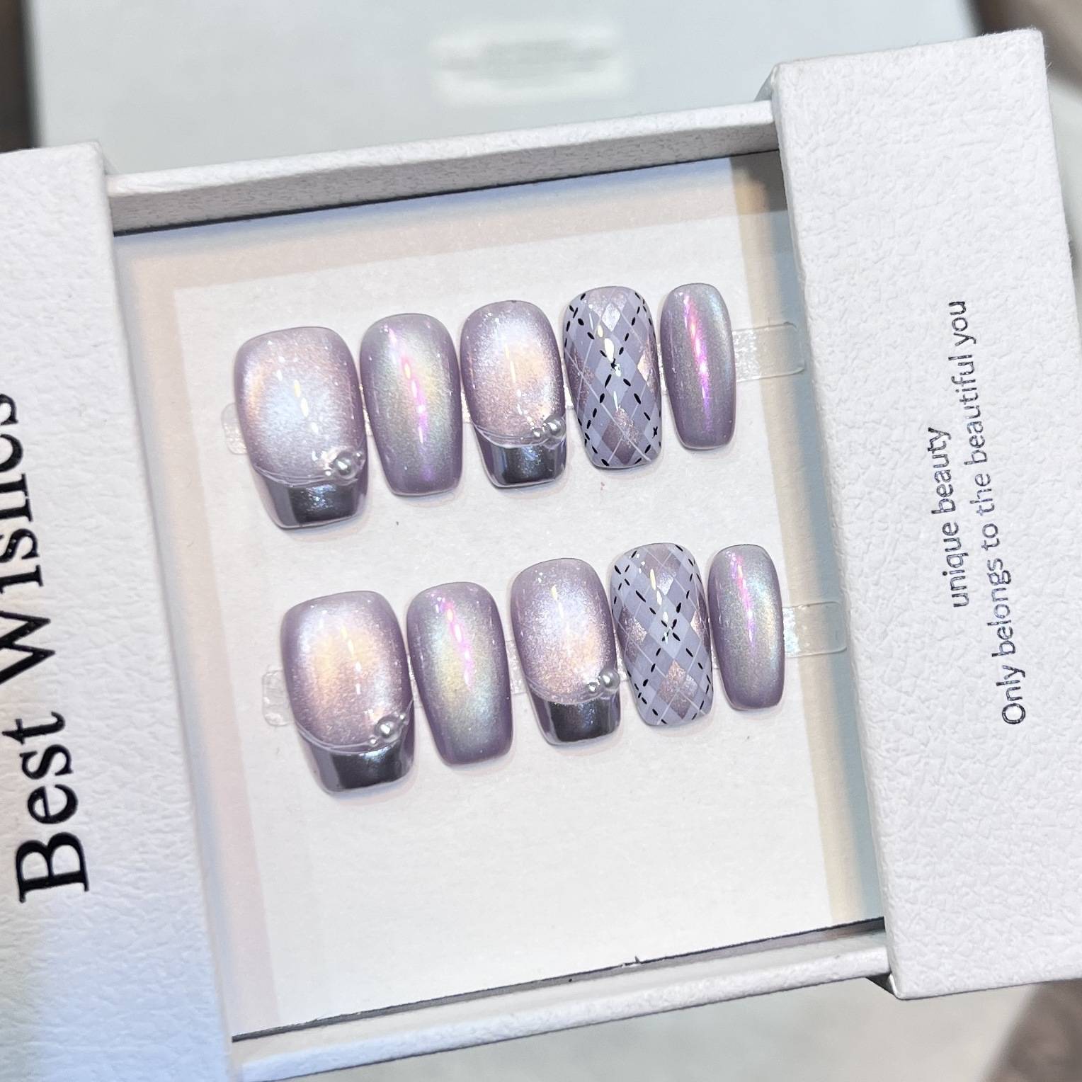 黛瑞森【镜域极光】手工穿戴甲手绘飘带魔镜法式美甲紫色极光甲片