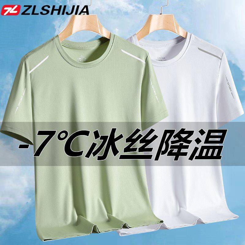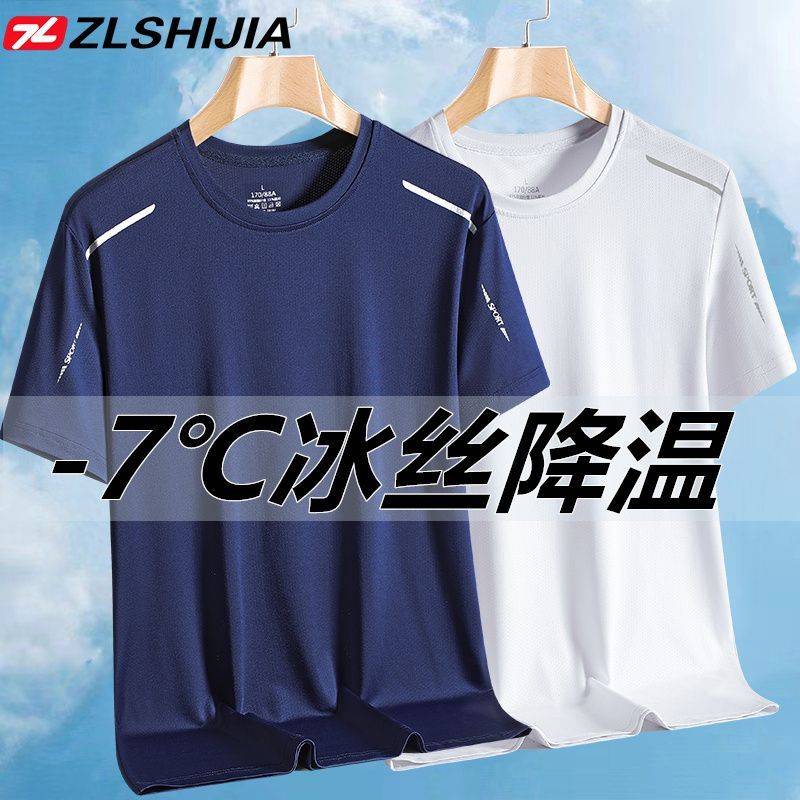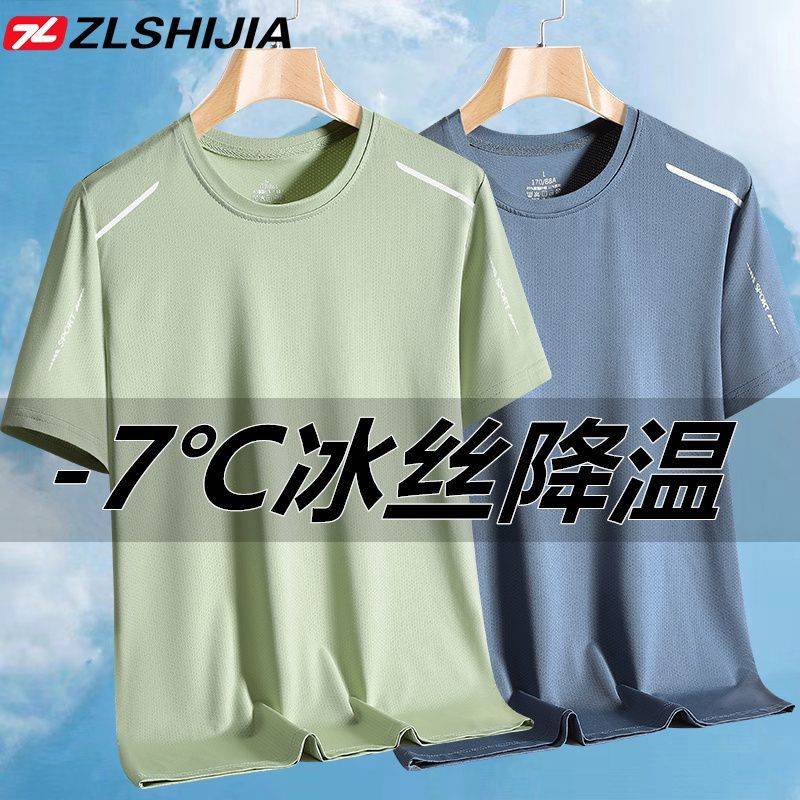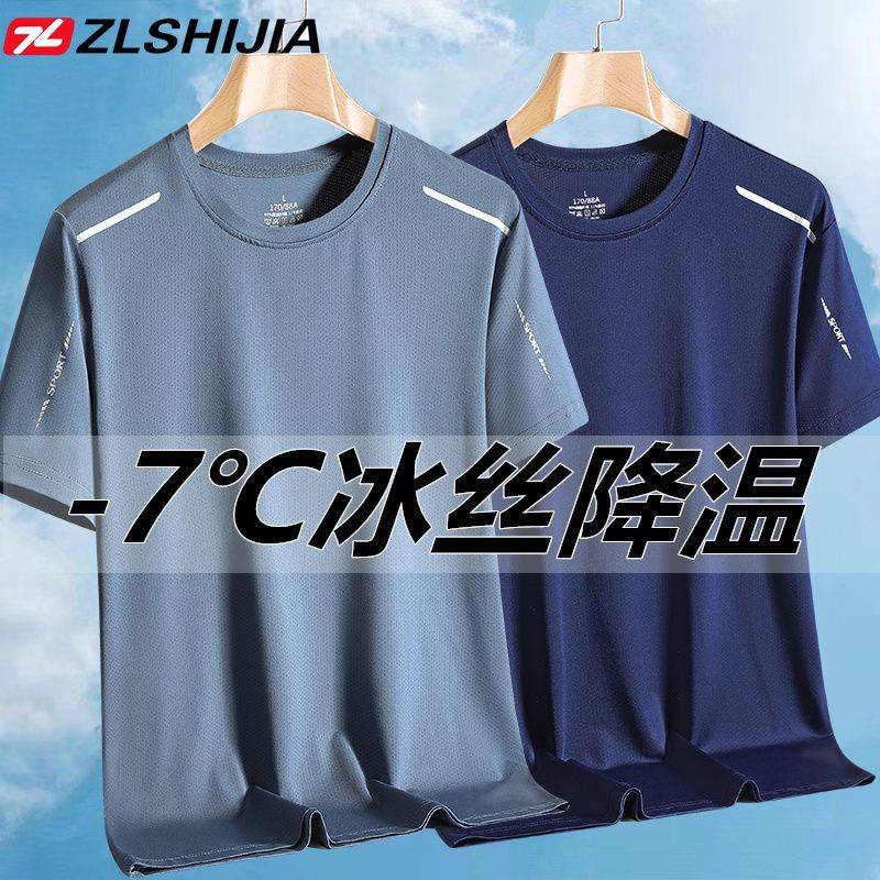 战狼世家冰丝短袖T恤衫男夏季冰感圆领透气薄款宽松弹力速干衣男