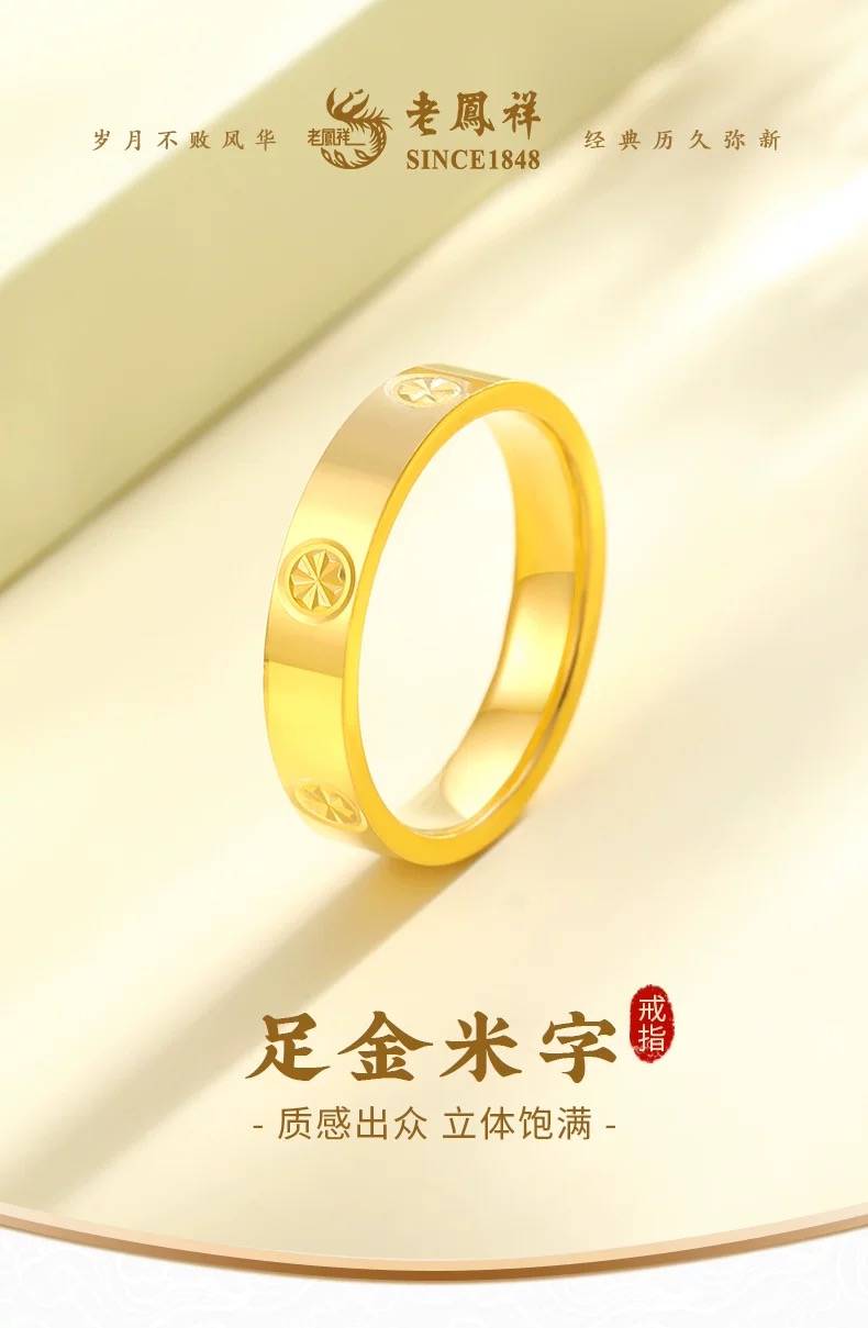 老凤祥米字黄金戒指男女同款999足金素圈闭口指环生日礼物送女友 2999.00 已售:1件