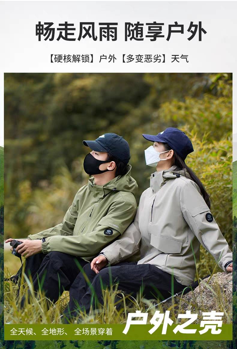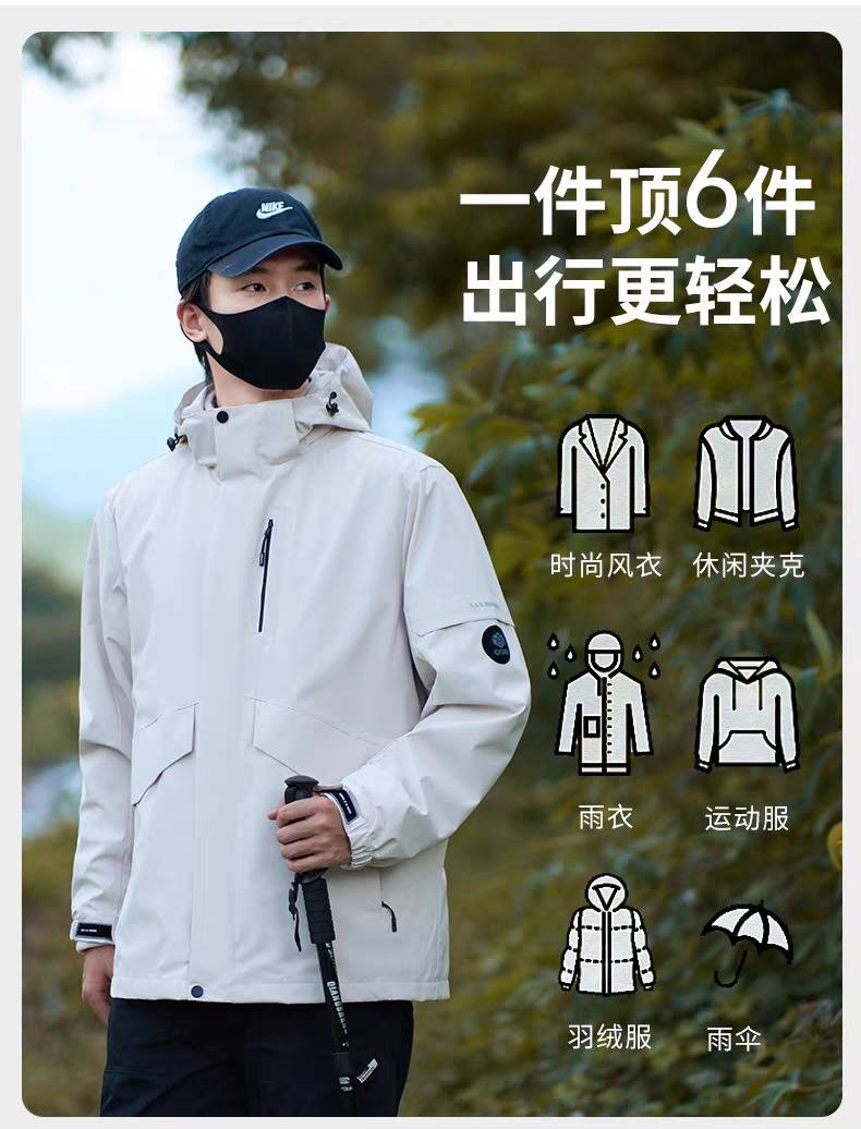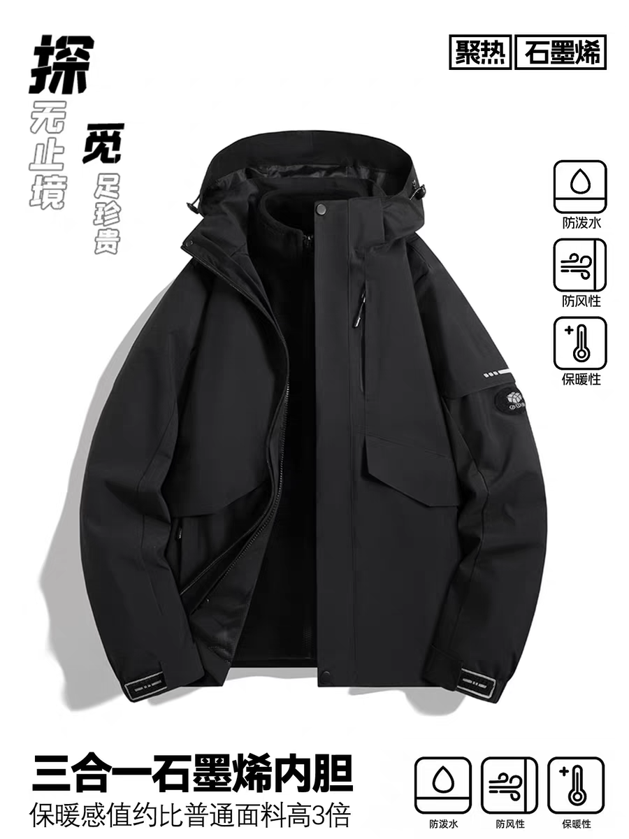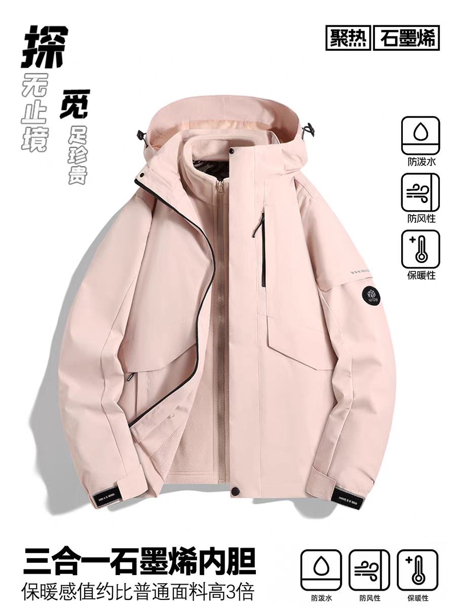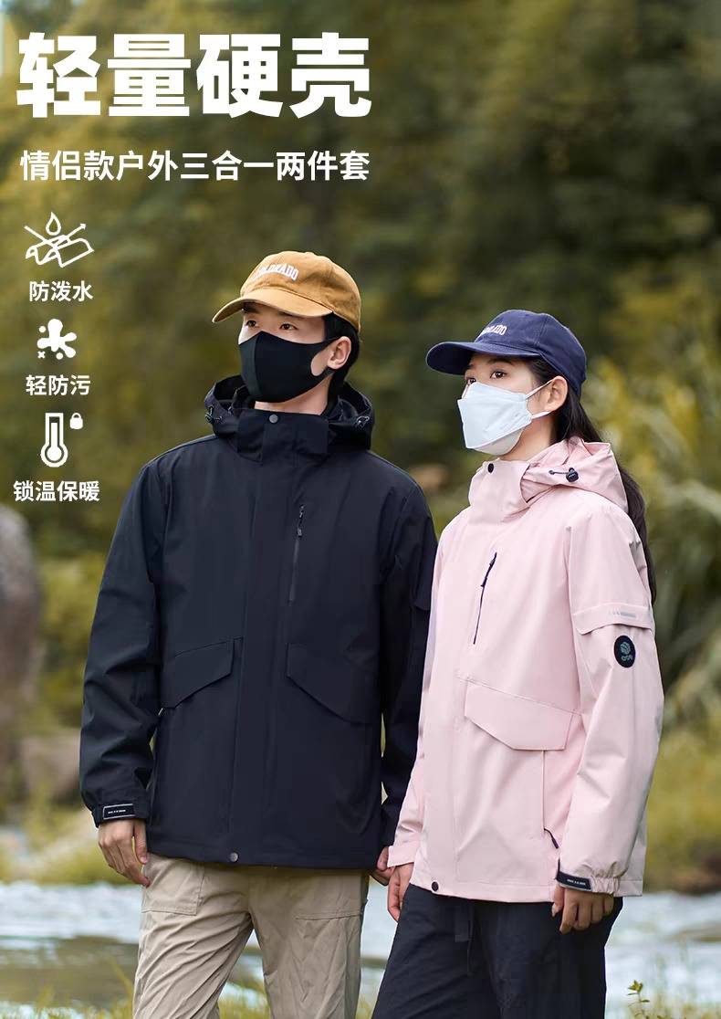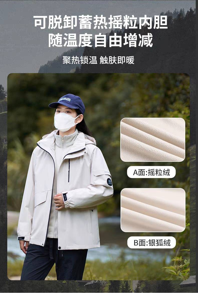 探觅冲锋衣男女三合一可拆卸加绒加厚防风 防水户外登山服新款外套