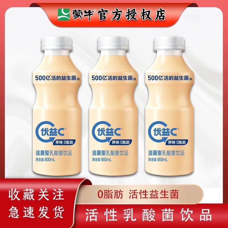 蒙牛优益C大瓶 800ml 活性乳酸菌饮品 0脂肪 原味营养早餐奶