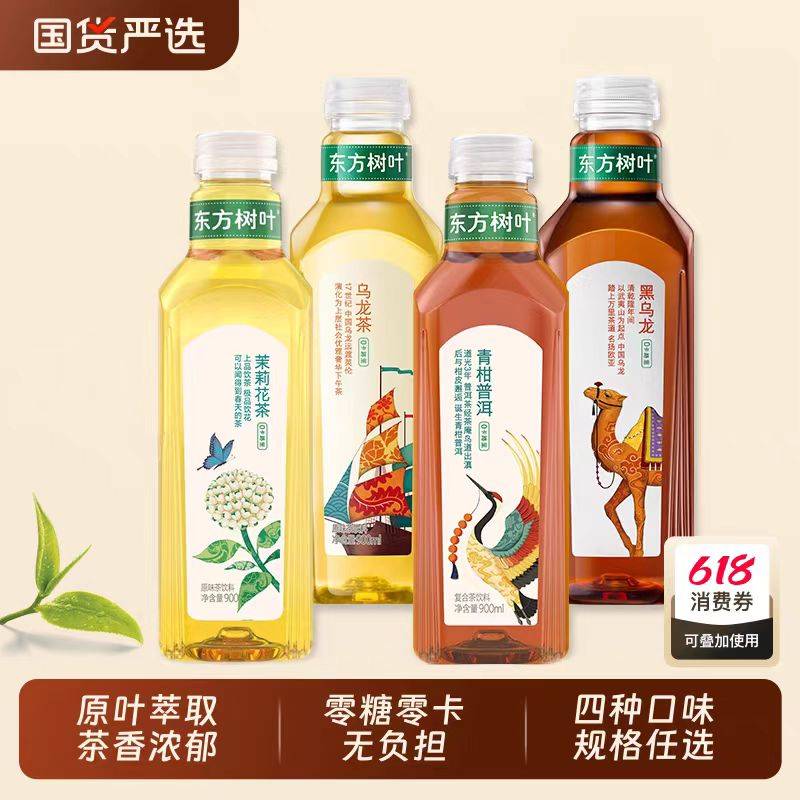 农夫山泉东方树叶青柑普洱茉莉花茶0糖无糖茶饮料900ml整箱12瓶
