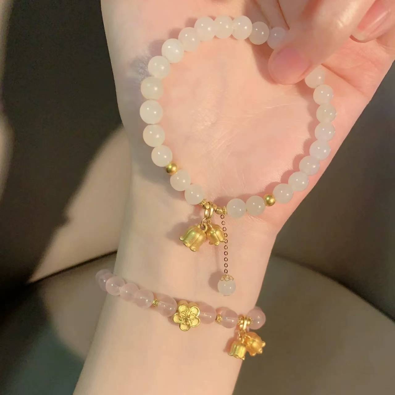 天然和田玉羊脂白玉散珠材料包diy半成品穿黄金福字手链圆珠手串