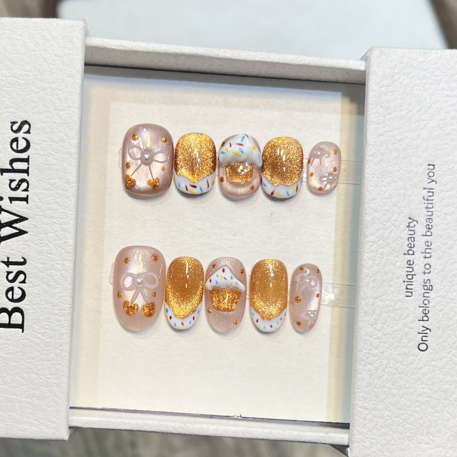 穿戴甲短款绵密猫眼糖果冰淇淋蝴蝶结甲片