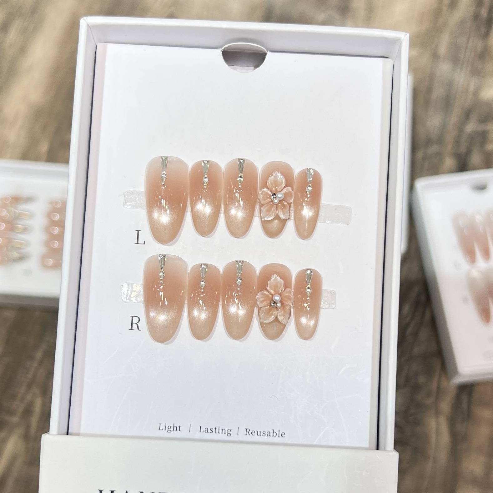 手工穿戴甲高级裸色法式冰透猫眼手绘魔镜小花珍珠美甲可拆卸甲片