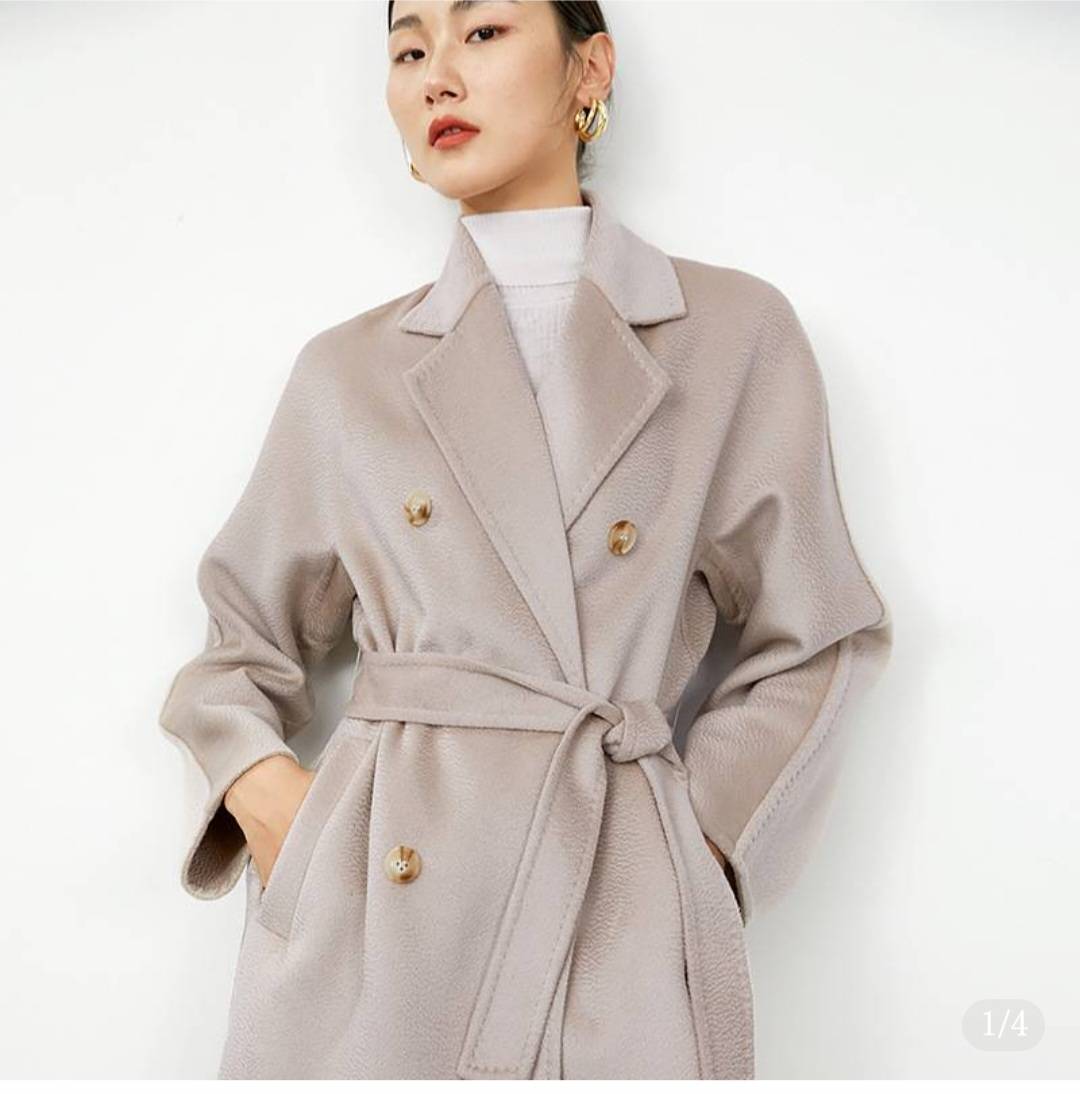 【盛宏】M家经典大衣双面羊绒大衣毛呢外套女水波纹羊绒大衣7202