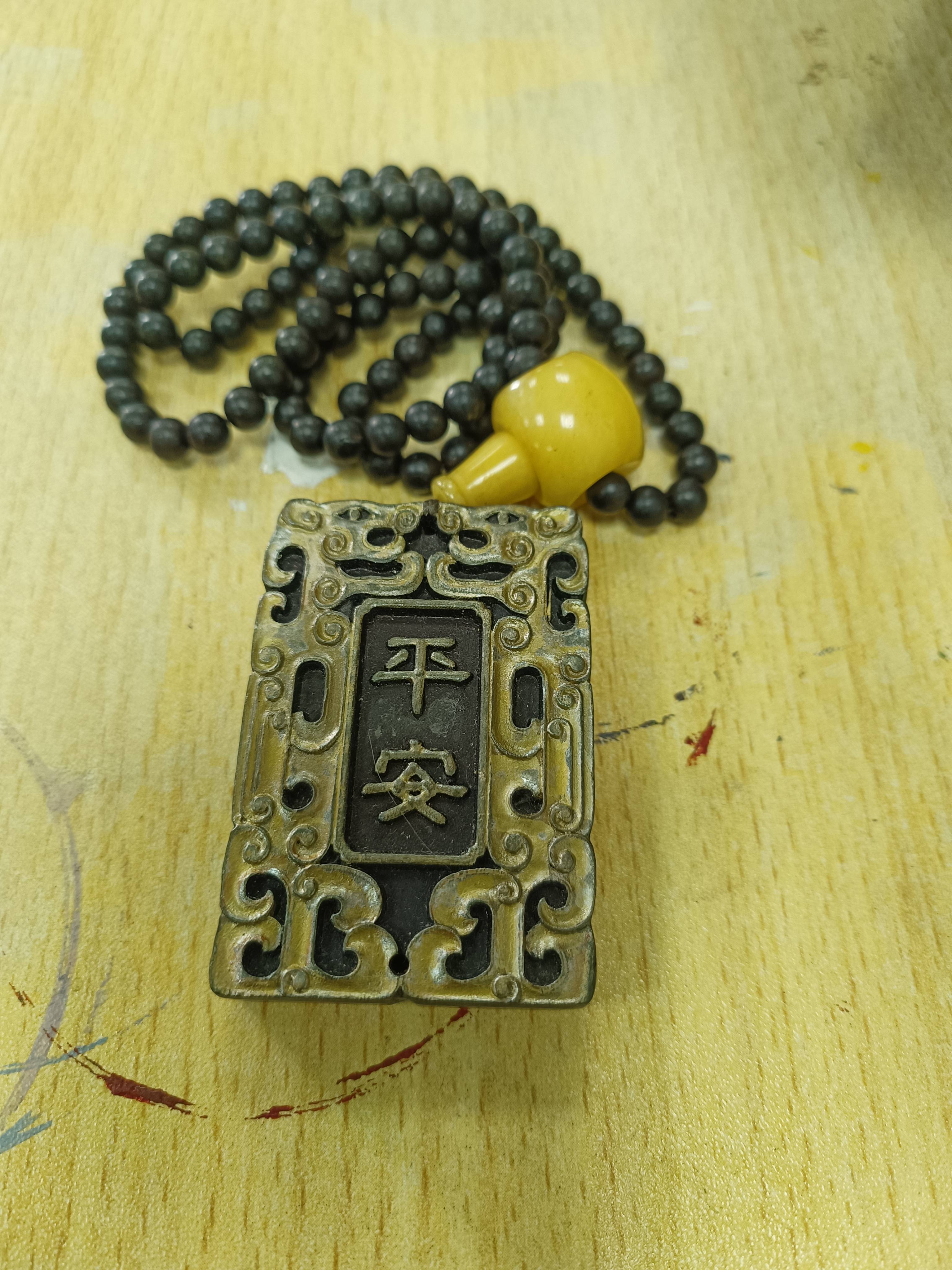 手工雕刻金漆黑檀木平安牌