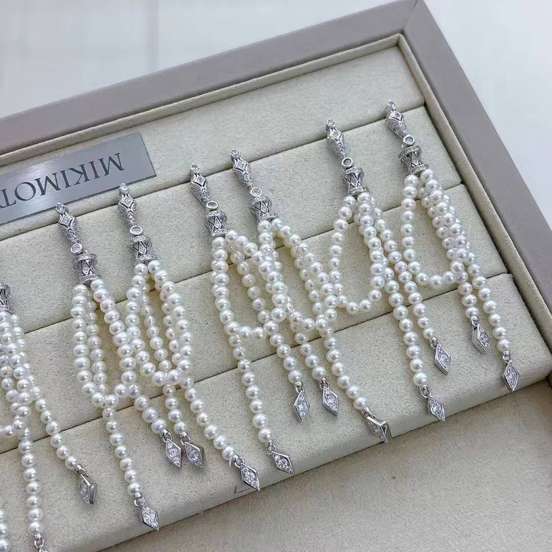 法式流苏珍珠耳钉设计师长款强光白亮淡水珍珠耳环S925银