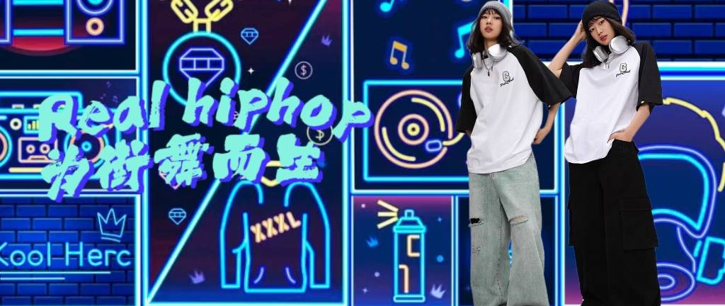 街舞潮牌黑白插肩美式T恤嘻哈街头跳舞上衣爵士舞欧美半袖