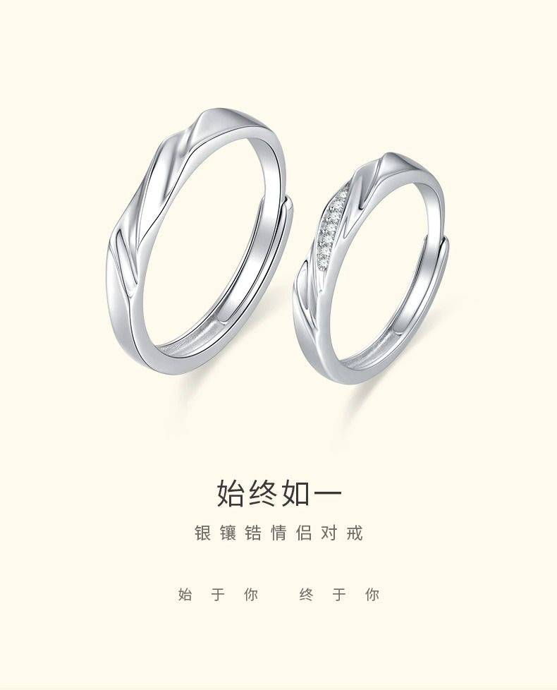 S925银 520结婚情侣对戒 韩版男女开口戒指 七夕纪念日礼物